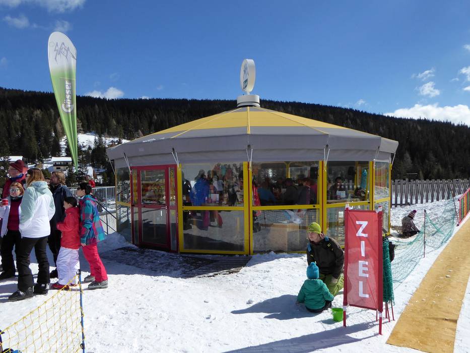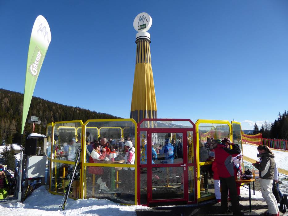 Le rendez-vous après-ski au Lachtal. Le bar sous parasol est ouvert tous les jours et l'ambiance de fête commence l'après-midi. Par beau temps, le toit du Sky Bar s'ouvre.