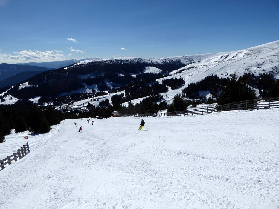 Depuis la station supérieure du télésiège Zinkenlift, on descend par des pistes rouges variées, en passant devant la station supérieure de la télésiège Lachtal, jusqu’à la vallée. Dans la partie supérieure, on profite d’une vue magnifique. La section inférieure de la piste traverse de petits bois.