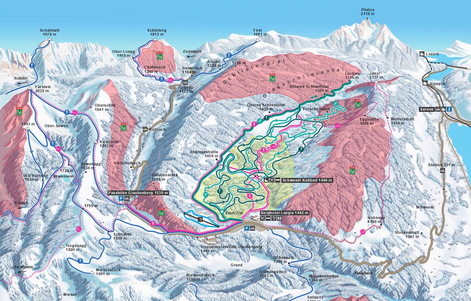 Sarnen (13 km), Entlebuch (18 km) Communes près du domaine skiable