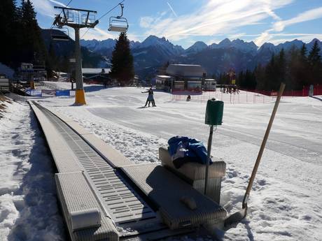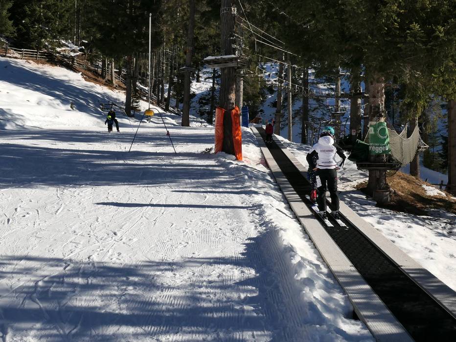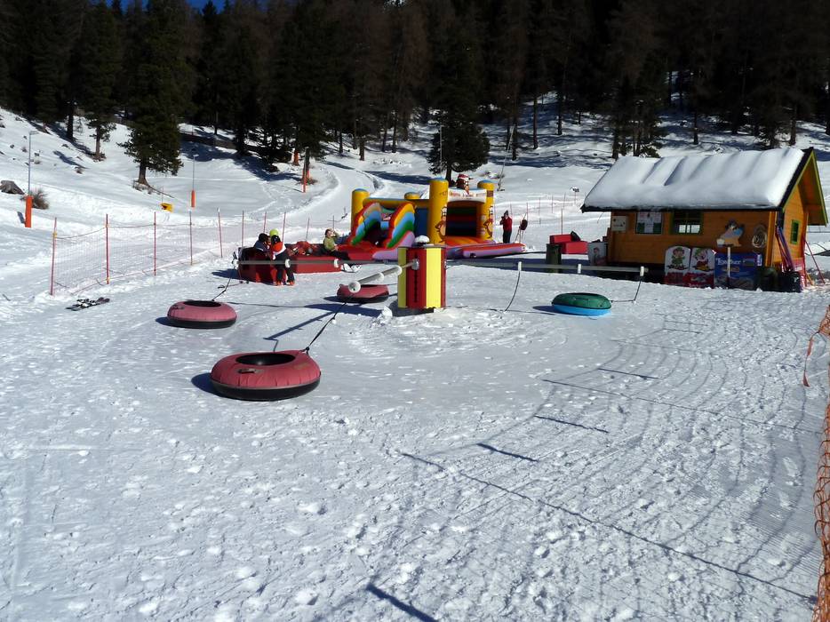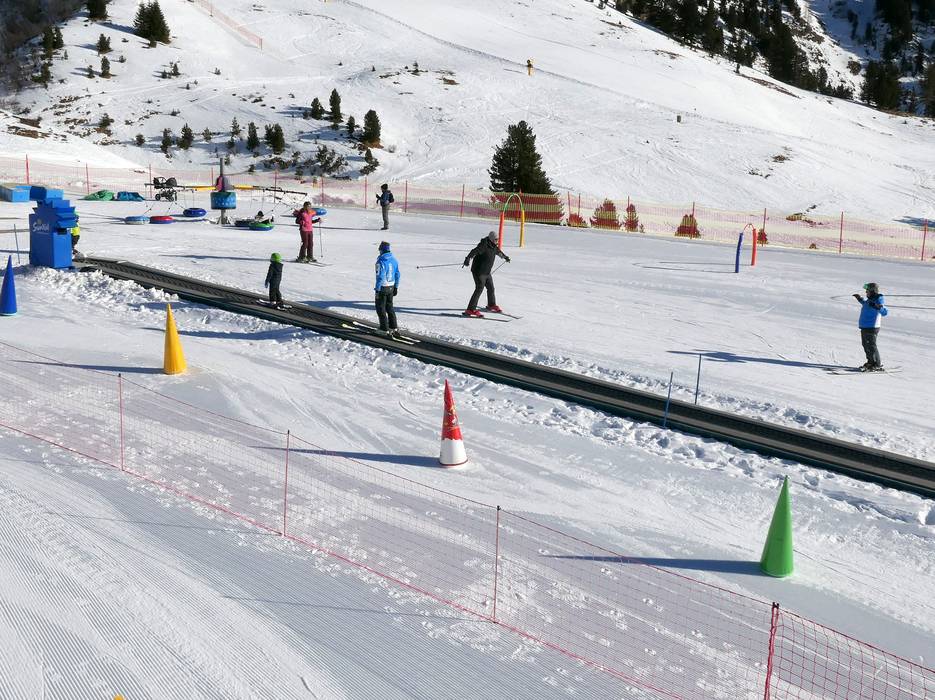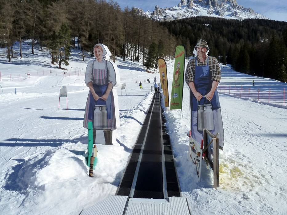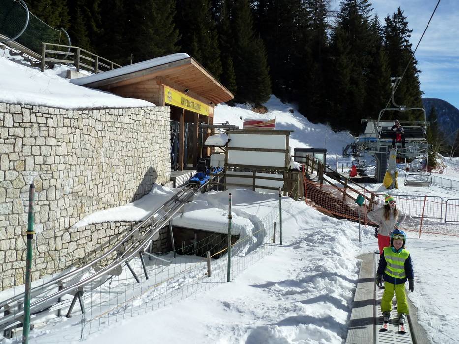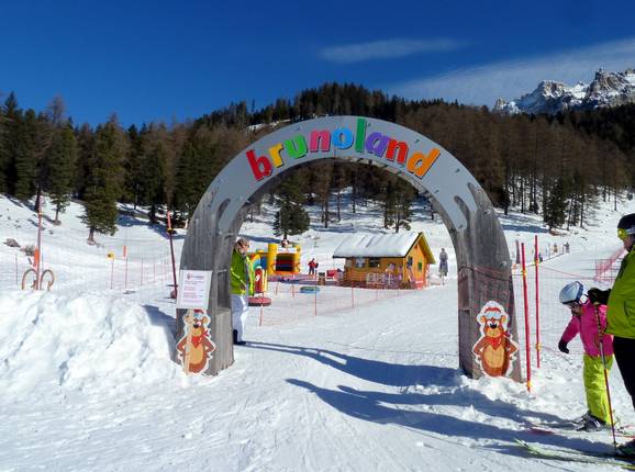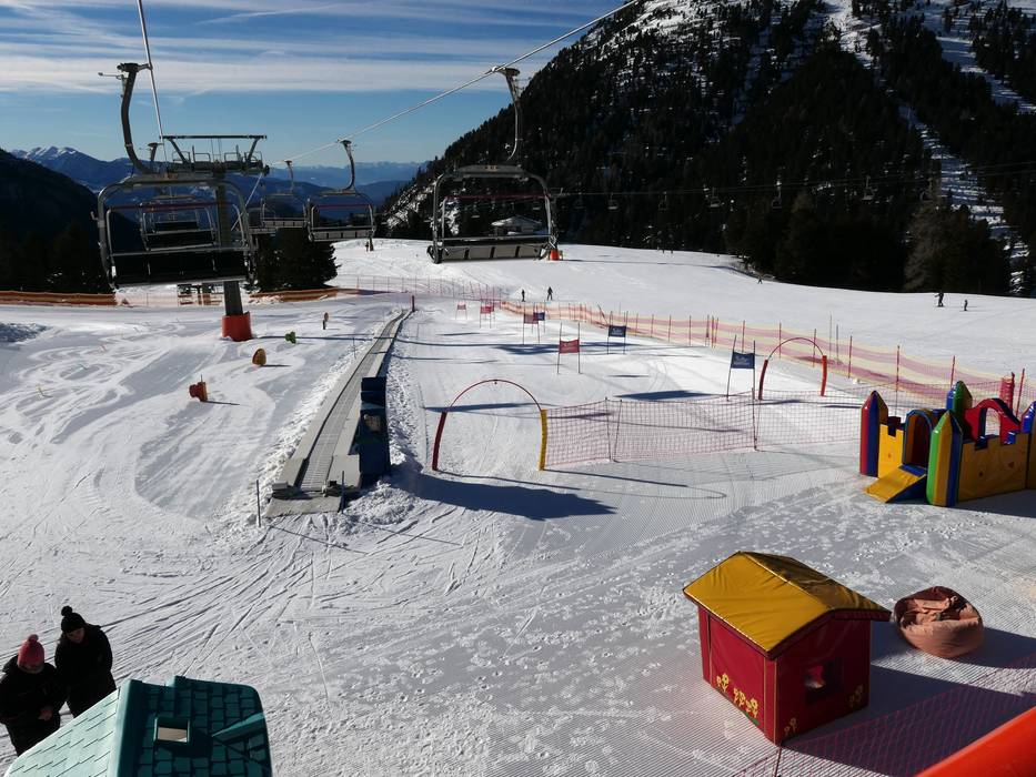 À la station supérieure de la télécabine de Predazzo, il y a une garderie encadrée avec un tapis roulant et une piste pour enfants.