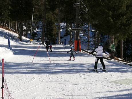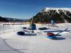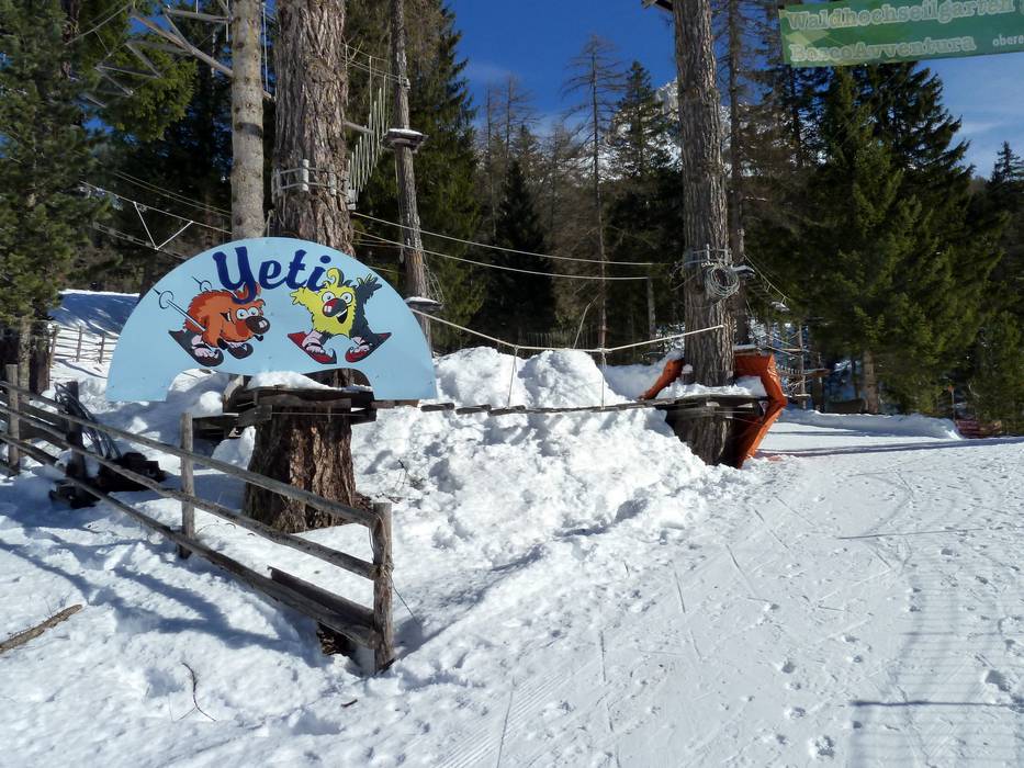 L'école de ski et de snowboard Obereggen propose des cours de ski pour les plus petits au Yeti Kinderland, équipé d'un tapis roulant et d'un carrousel de ski.