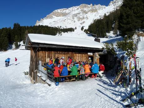 Avec le refuge de montagne Oberholz, un véritable joyau architectural a vu le jour. Dans tout le domaine skiable, des refuges rustiques et chaleureux invitent à faire une pause. À toutes les stations de vallée, on trouve également des possibilités de restauration. On y propose principalement des spécialités régionales du Tyrol du Sud et du Trentin. On trouve aussi des refuges exclusifs, comme la Mayrl Alm, l’In.Treska, la Baita Gardoné ainsi que le refuge de montagne Oberholz.