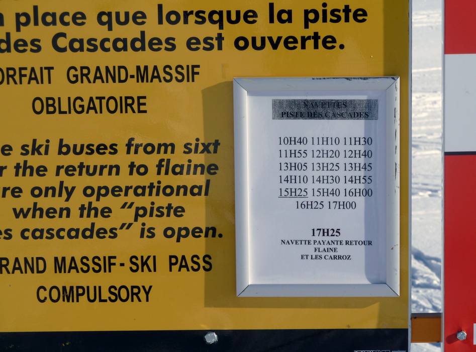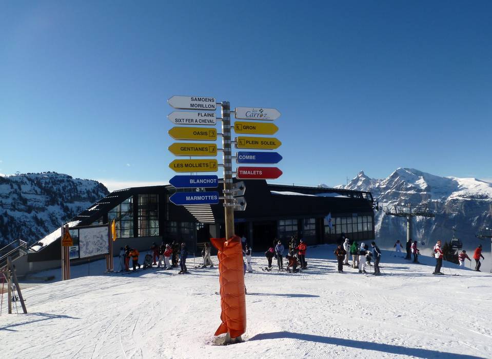 Indications de directions (plans, panneaux informatifs, signalisation) et sécurité sur le domaine skiable Le Grand Massif – Flaine/Les Carroz/Morillon/Samoëns/Sixt