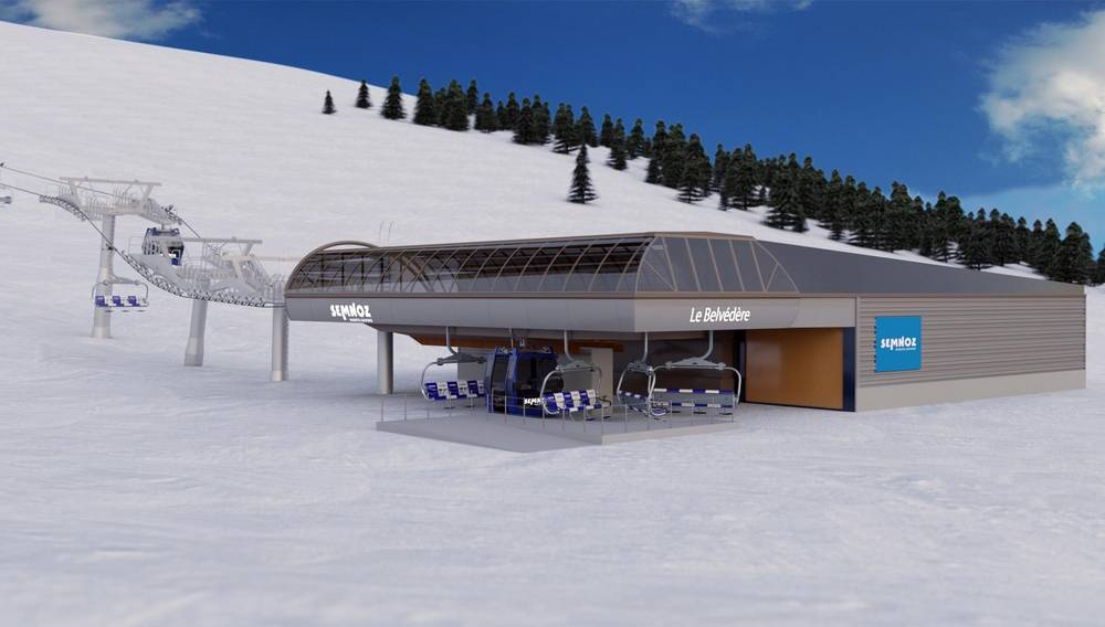 Téléphérique monocâble composé de sièges à 6 places et de cabines à 10 places