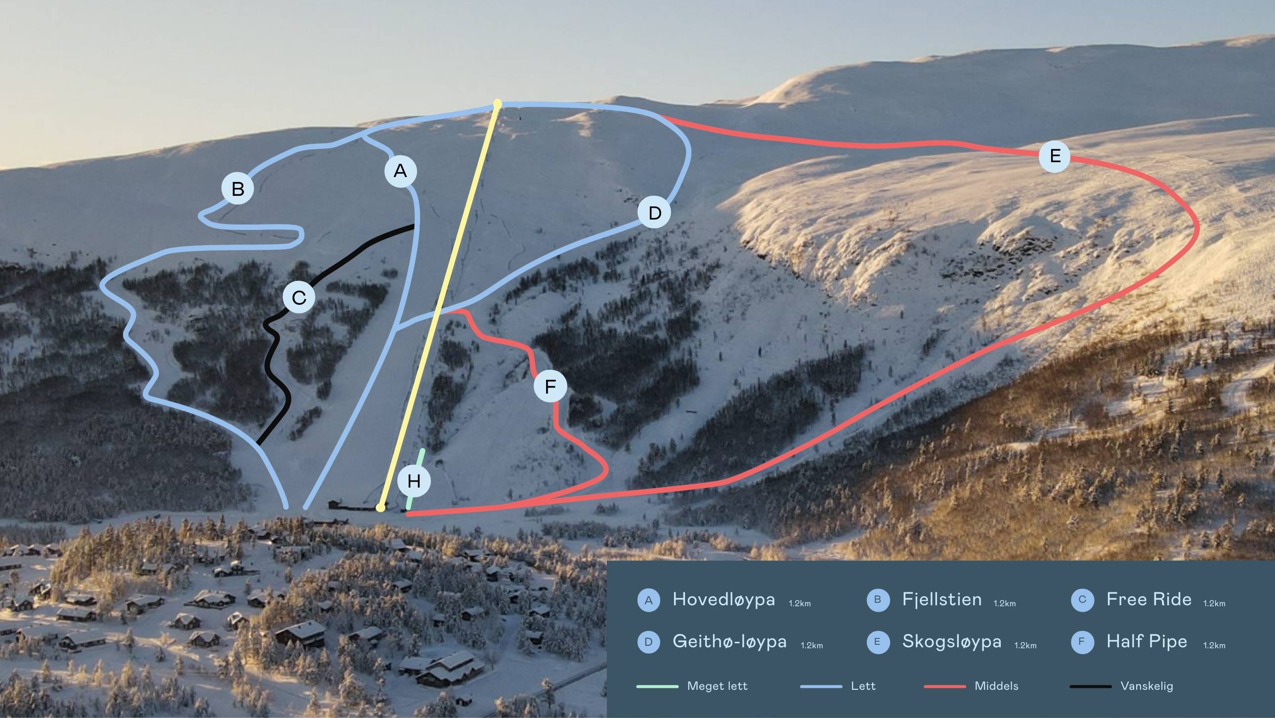 Plan des pistes Lemonsjø Alpinsenter (Jotunheimen) Saison 2024/2025