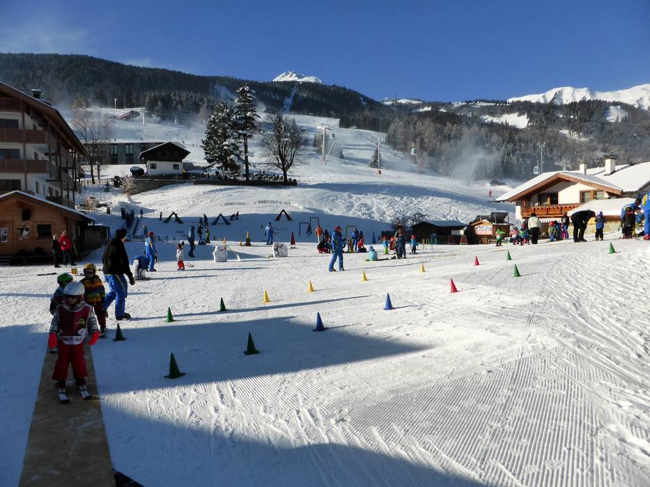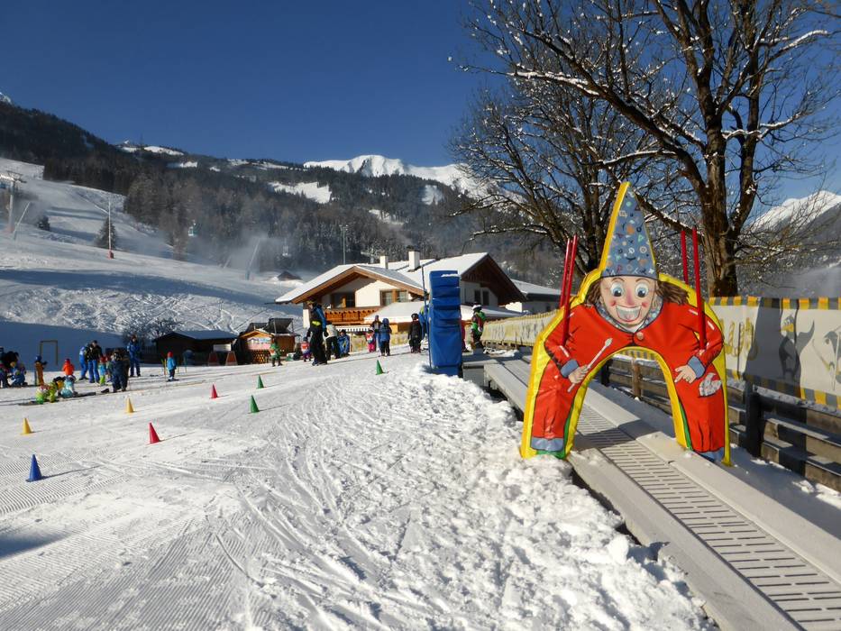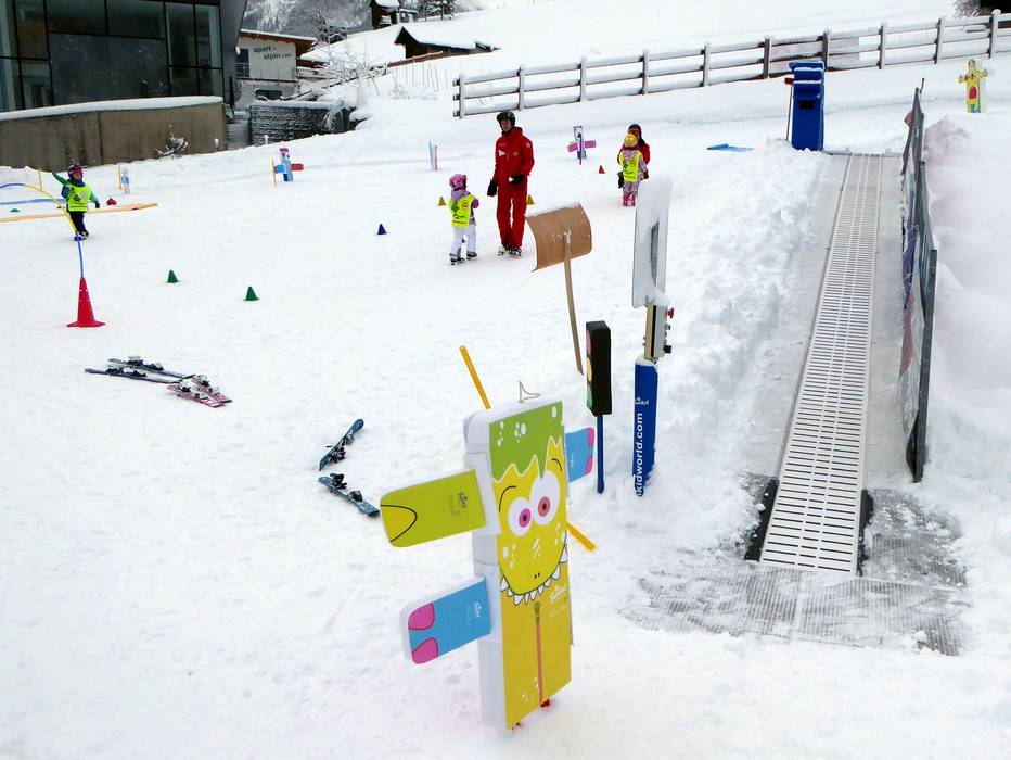 Le Alpenrose Familux Resort propose une offre spéciale à ses clients. Sur le terrain de l'hôtel, le toit du parking souterrain est refroidi et enneigé. Les tout-petits (2,5 à 3,9 ans) y apprennent à skier. La mascotte Bobo leur rend régulièrement visite.