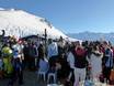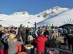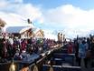 Chaque jour, entre environ 14h00 et 16h30, la terrasse panoramique se transforme en zone de fête en plein air. Des DJs proposent des sons cools et l’on profite du coucher de soleil avant de redescendre dans la vallée à skis.