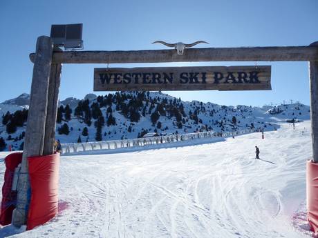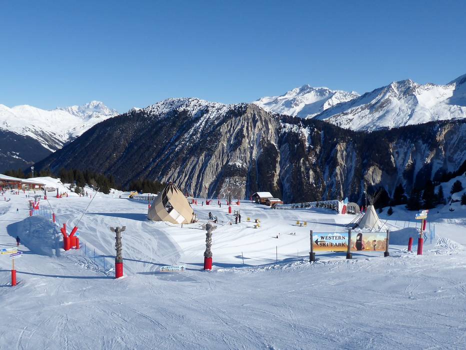 Le Western Skipark à Courchevel-Moriond propose un espace fermé et facile dans le pays des Indiens et des cow-boys. Des tapis roulants couverts desservent de larges pistes agrémentées de personnages amusants. Les enfants et les familles adorent skier dans cette ambiance western.