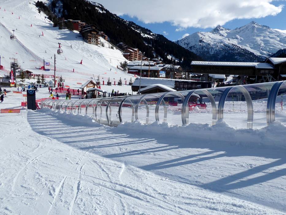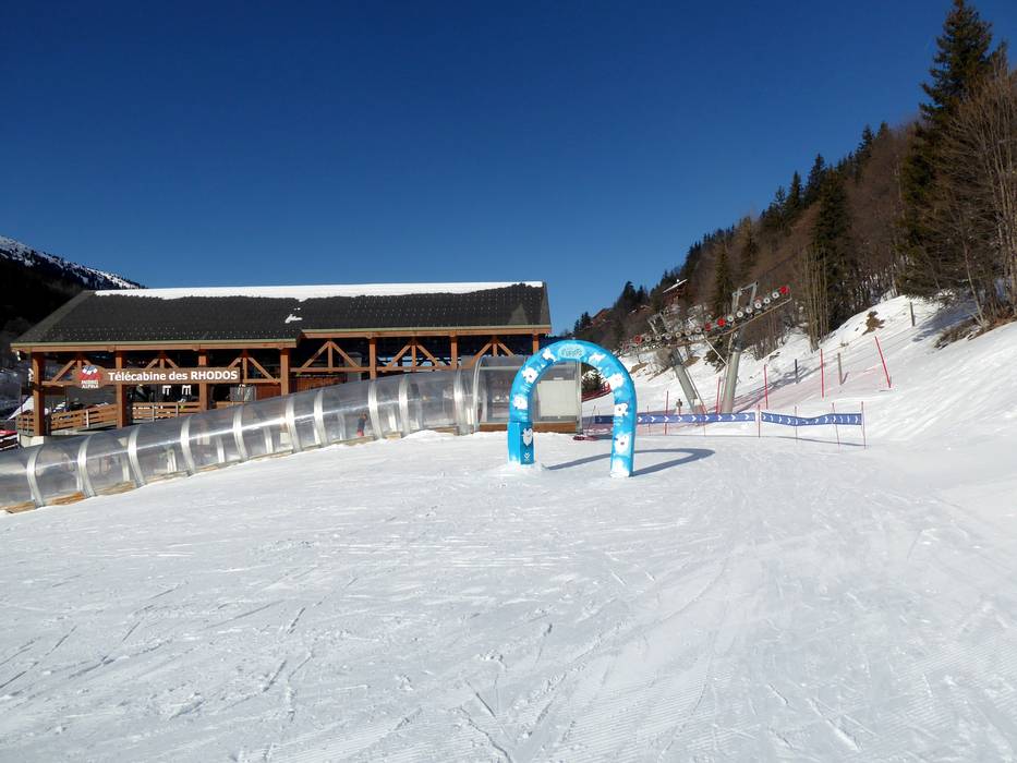 La piste d'entraînement gratuite avec tapis roulant couvert et personnages amusants se trouve à Méribel Centre. Ici, les enfants peuvent s'exercer en toute tranquillité et s'amuser dans la neige.