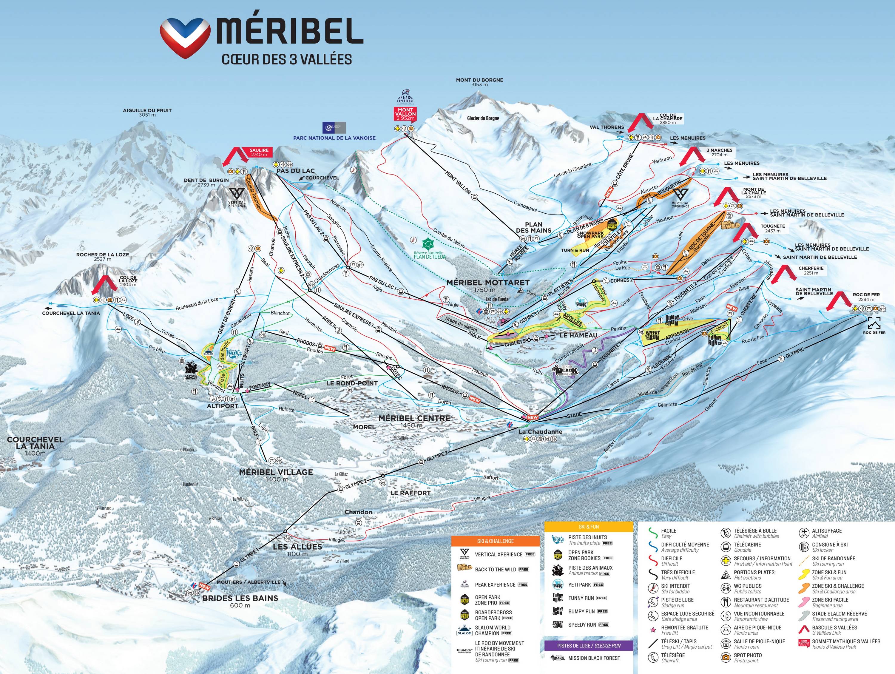 Indications de directions (plans, panneaux informatifs, signalisation) et sécurité sur le domaine skiable Les 3 Vallées – Val Thorens/Les Menuires/Méribel/Courchevel