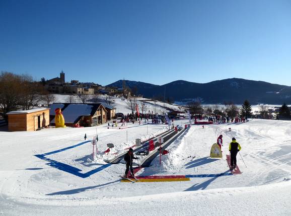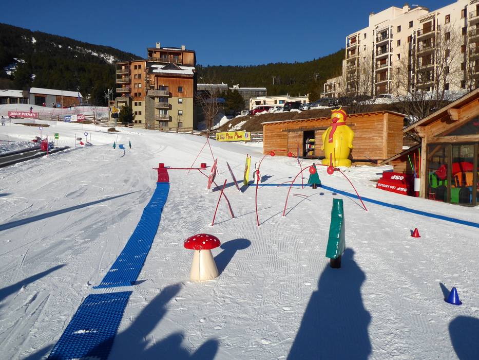 Au cœur de la station Les Angles se trouve le jardin d'enfants Club Piou Piou, qui propose une garde d'enfants à partir de 3 ans. Sur plusieurs tapis roulants et avec des personnages amusants, les plus petits peuvent y apprendre les sports d'hiver en toute tranquillité. Juste à côté se trouvent d'autres tapis roulants et un téléski d'entraînement.