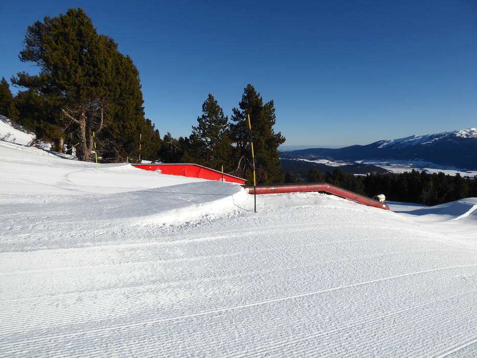 Le domaine skiable Les Angles propose un beau snowpark pour tous les niveaux dans le secteur Bigorre.