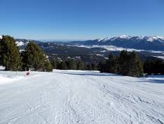 Vue sur la station Les Angles et le paysage… Panorama dans le domaine skiable Les Angles