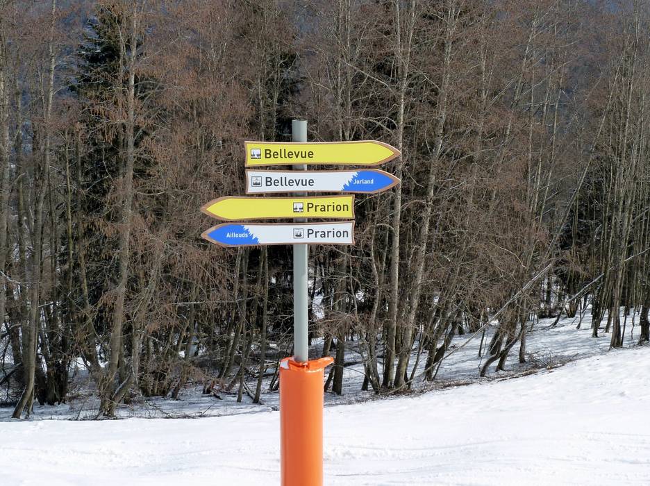 Indications de directions (plans, panneaux informatifs, signalisation) et sécurité sur le domaine skiable Les Houches/Saint-Gervais – Prarion/Bellevue (Chamonix)