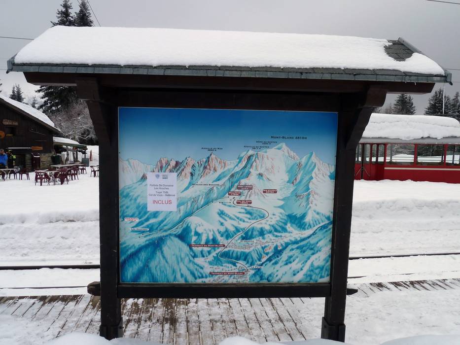Le domaine skiable des Houches est représenté sur le plan général de Chamonix-Mont-Blanc. Il existe également un plan des pistes propre au domaine skiable. Tous les remontées mécaniques et pistes y sont indiqués. Au verso, on trouve des informations sur les restaurants d'altitude, les parkings et les activités dans le domaine skiable. Malheureusement, il y a peu d'informations sur le Tramway du Mont Blanc.