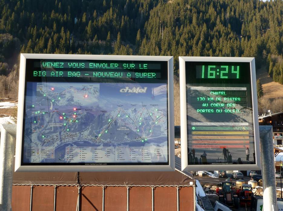 Indications de directions (plans, panneaux informatifs, signalisation) et sécurité sur le domaine skiable Les Portes du Soleil – Morzine/Avoriaz/Les Gets/Châtel/Morgins/Champéry