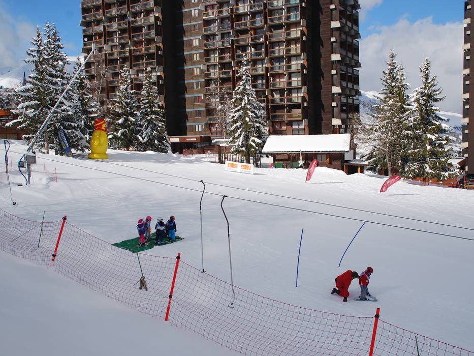 Situation centrale et pourtant sans circulation croisée – c’est ce qui caractérise le Jardin des Neiges à Saint Sorlin. Pour les trois téléskis ainsi que le tapis roulant, il existe un forfait de ski dédié et avantageux.