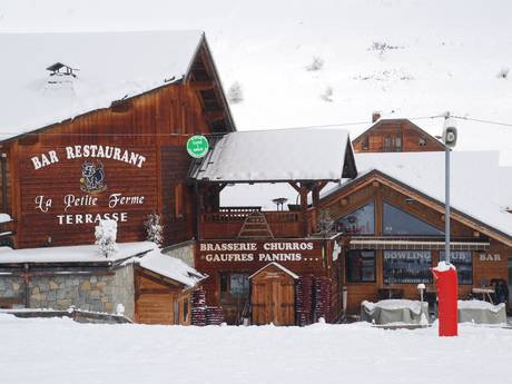 Les restaurants d’altitude, presque tous situés dans des endroits offrant une vue magnifique ou dans un décor de haute montagne, sont de taille modeste et misent sur la simplicité : un peu de bois, quelques vieilles photos, un poêle à bois – cela suffit généralement à créer une ambiance authentique et chaleureuse, sans artifice. On y sert une cuisine régionale simple et généreuse, souvent à base de fromage, car nous sommes ici en Savoie. Cela se retrouve aussi dans les desserts typiques. Il n’y a cependant pas énormément de restaurants ou refuges d’altitude. Cela s’explique par le fait que de nombreux restaurants se trouvent directement sur les pistes dans les stations de ski, où les terrasses ensoleillées sont généralement moins exposées au vent et bénéficient de quelques degrés de plus qu’en haut de la montagne. Cela les rend très populaires. Surtout aux stations de départ de Le Corbier et Saint Sorlin, on trouve de nombreux restaurants, avec un choix allant du self-service à des établissements plus raffinés.