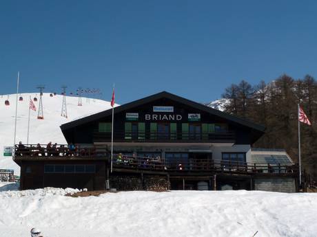Dans le domaine skiable, il y a des chalets de montagne et des restaurants avec de grandes terrasses ensoleillées. Des spécialités valaisannes y sont souvent proposées.