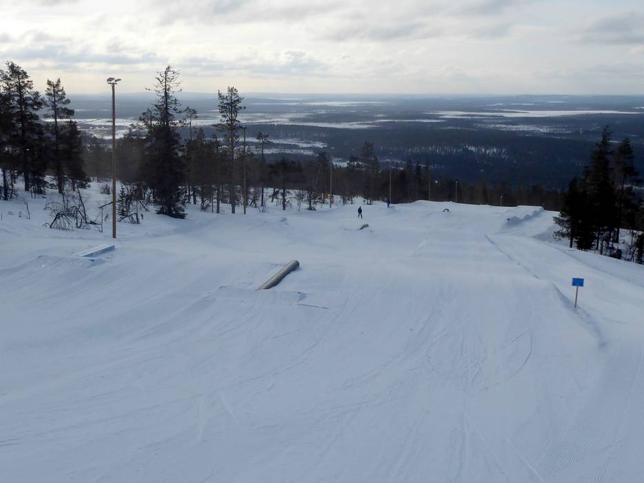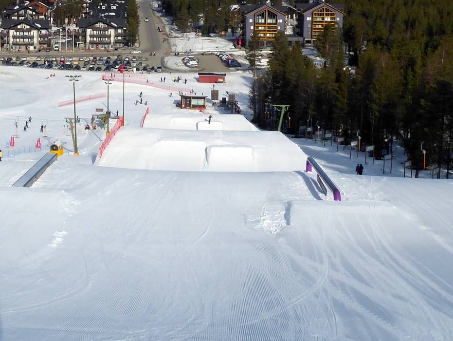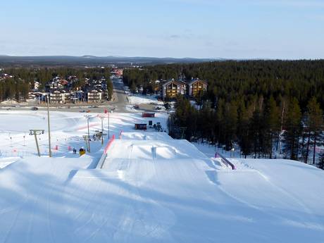 Le snowpark et la superpipe se trouvent sur les Front Slopes avec une vue directe sur le Levi Center. On y trouve des obstacles attractifs pour les bons freestylers et snowboardeurs.