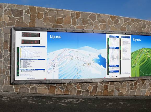 Indications de directions (plans, panneaux informatifs, signalisation) et sécurité sur le domaine skiable Lipno