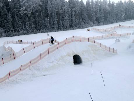 Les pistes de skicross offrent du plaisir aussi bien aux enfants qu’aux adultes. Avec des vagues, des virages relevés et un tunnel, l’action est garantie.