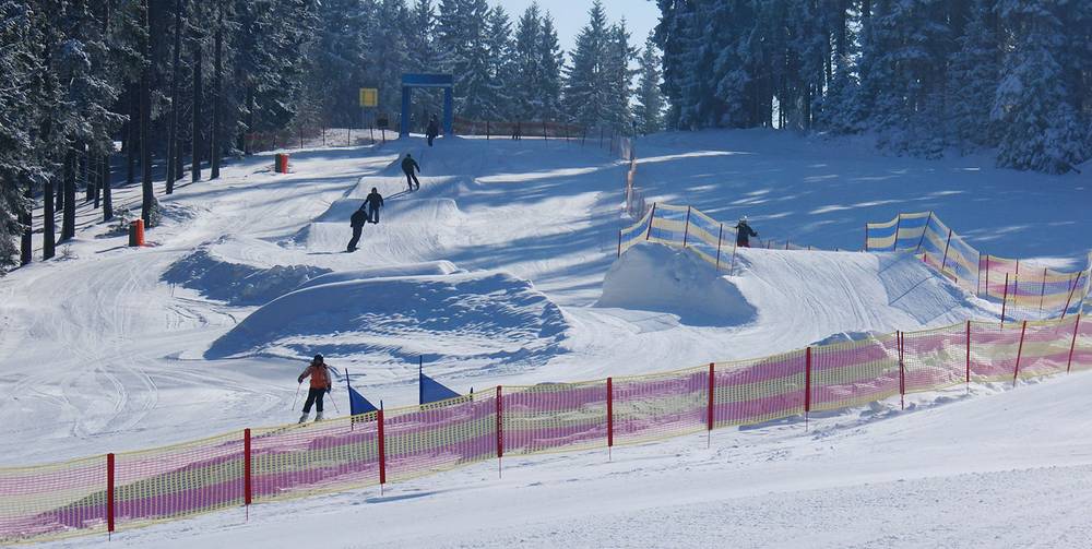 Le Snowpark Lipno offre un environnement complet pour le freestyle en snowboard ou en freeski, aussi bien pour les débutants absolus que pour les skieurs expérimentés.La première section comprend quatre boxes et de petits sauts, adaptés à l'apprentissage des bases du freestyle, spécialement conçue pour les débutants.