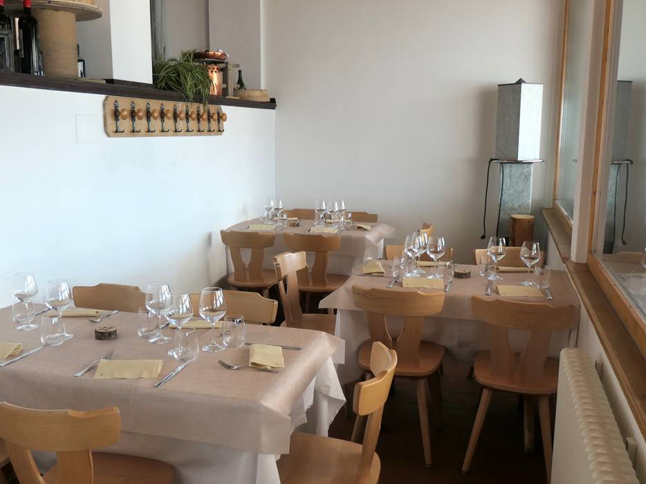 Le restaurant à la carte avec une salle traditionnelle alpine en bois propose des spécialités valaisannes.
