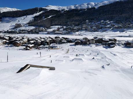 Livigno propose des snowparks de premier ordre au Mottolino et au Carosello 3000. Les snowparks sont très appréciés dans la scène, notamment en raison de l’enneigement garanti. D’autres petits snowparks sont répartis dans le domaine skiable. Du débutant au professionnel, tout le monde y trouve son compte. De plus, de nombreux parcours d’obstacles, pistes ludiques et un halfpipe naturel (bassin naturel) sont disponibles.
