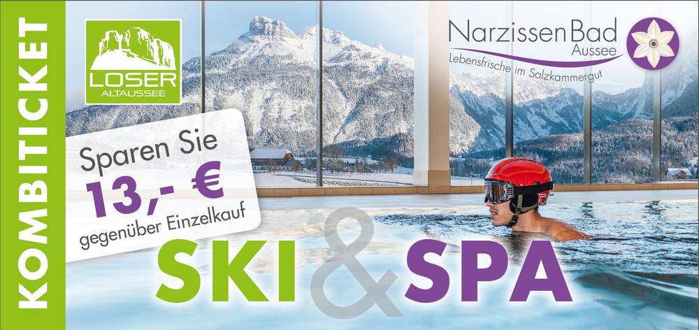 Pour la première fois, les deux principales attractions de loisirs de la région d’Ausseerland – le Narzissen Bad Aussee et le Family Ski Resort Loser – peuvent être découvertes avec un seul ticket. À un tarif spécial réduit (moins 20 %), vous profitez en 48 heures de 4 heures de détente au Narzissen Bad et d’une journée complète de plaisir sur les pistes du Loser. Le Ski & Spa Ticket est disponible dans les deux établissements au prix de 42,00 € (économie de 13,00 € par rapport à l’achat séparé) du 06.12.2014 (ou à partir du début de la saison de ski) au 31.03.2015.2 nouvelles pistes