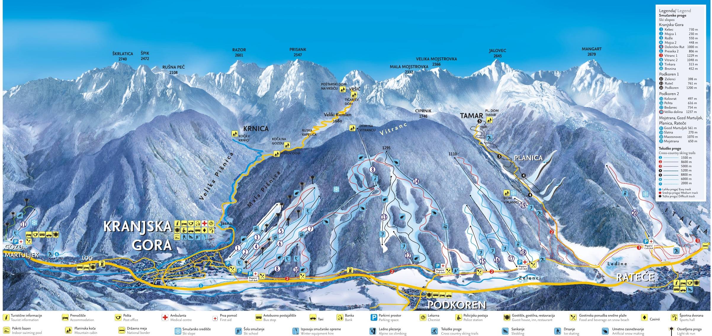 Plan des pistes Kranjska Gora - Rateče Saison 2024/2025