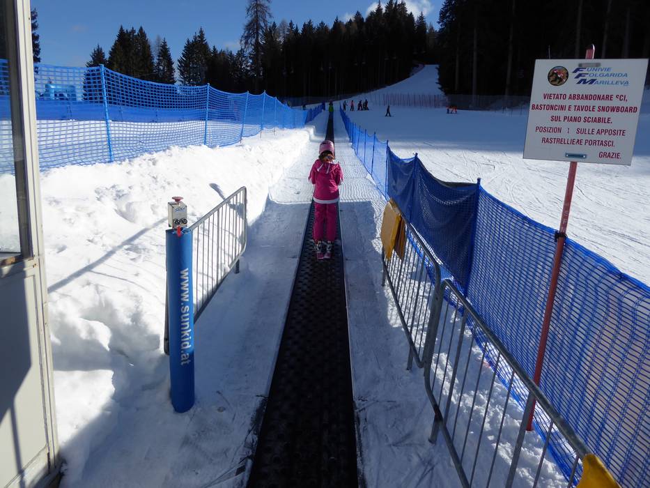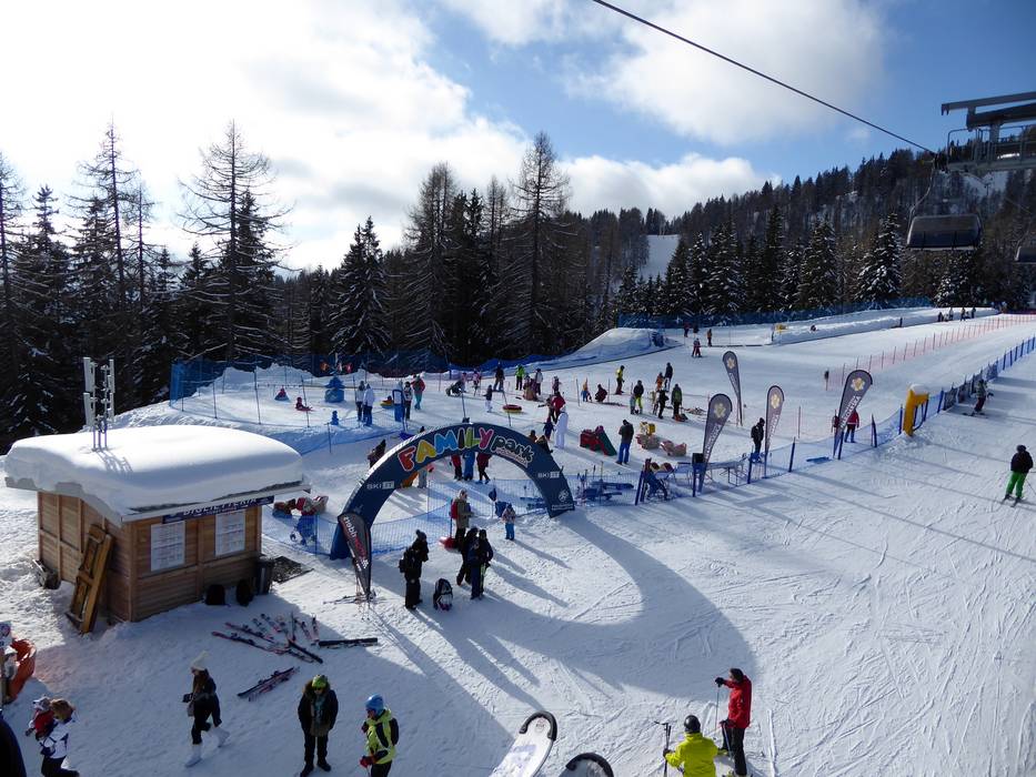 Le Familypark (Kinderland) se trouve directement à la station supérieure de la télécabine de Pinzolo à Prà Rodont. Ceux qui ont appris leurs premiers virages peuvent ensuite accéder directement au tapis roulant voisin et à la piste d’entraînement facile.
