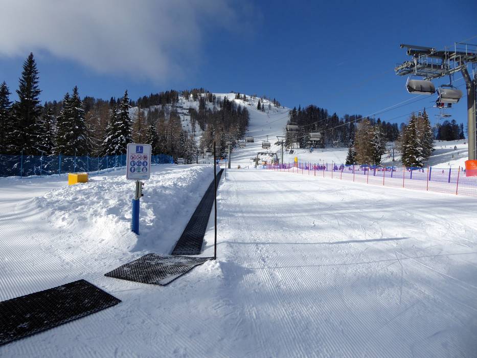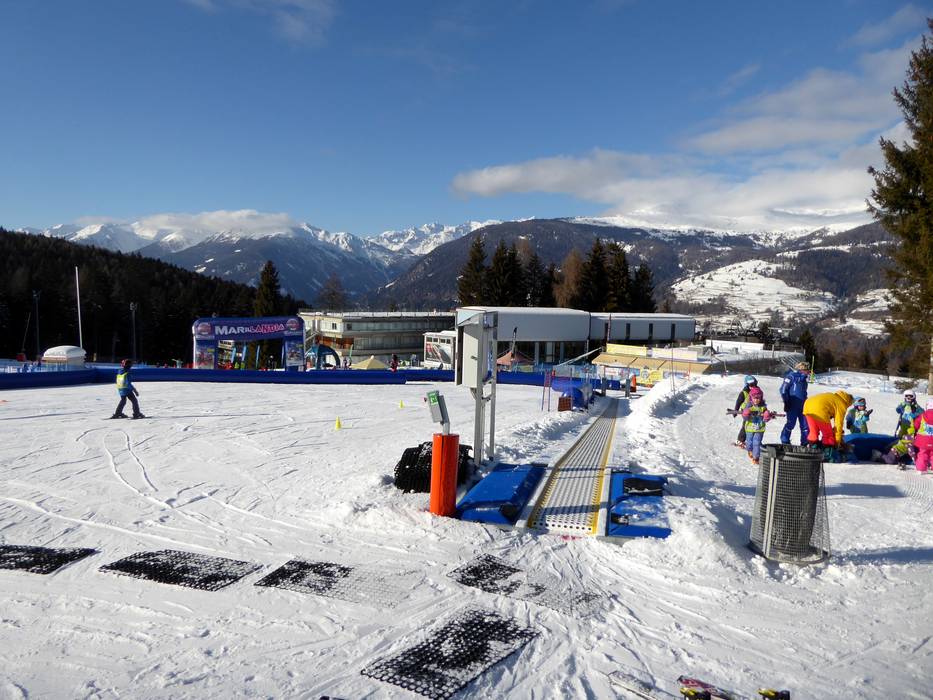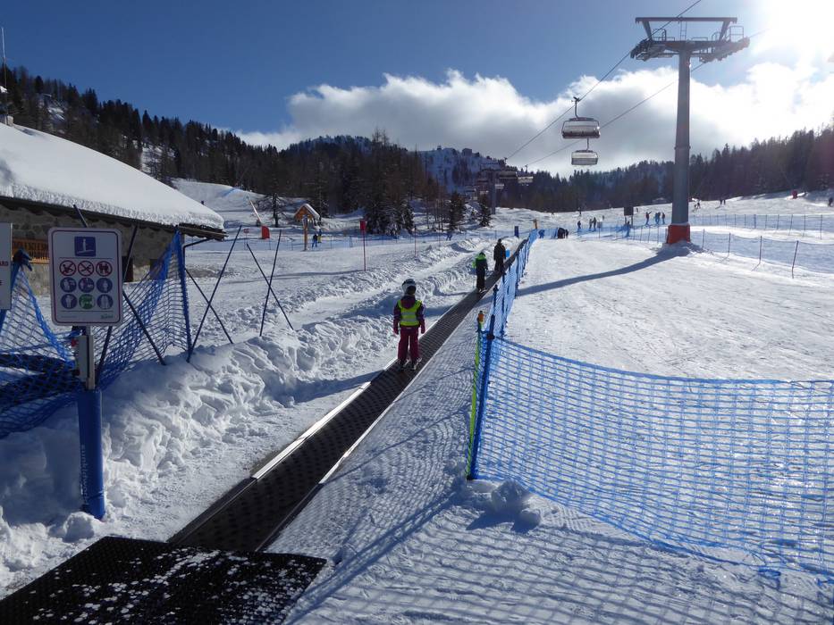 Directement dans la station se trouve le Kinderland à Madonna di Campiglio. Les parents peuvent observer leurs enfants sur place et n'ont pas besoin de monter en montagne. Juste à côté se trouve la piste d'exercice Belvedere.