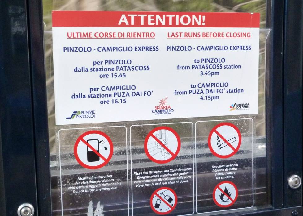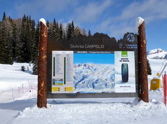Indications de directions (plans, panneaux informatifs, signalisation) et sécurité sur le domaine skiable Madonna di Campiglio/Pinzolo/Folgàrida/Marilleva