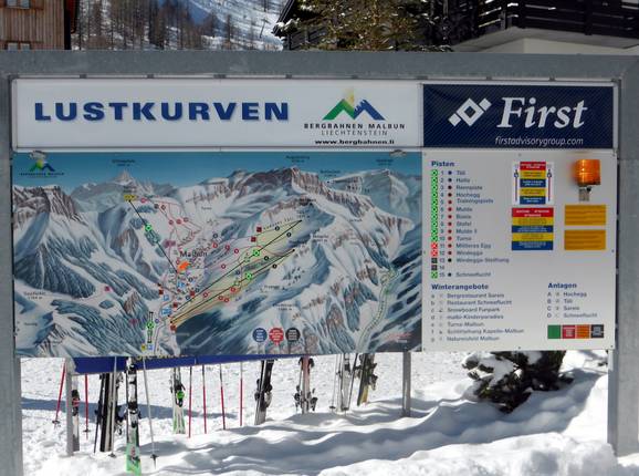 Indications de directions (plans, panneaux informatifs, signalisation) et sécurité sur le domaine skiable Malbun