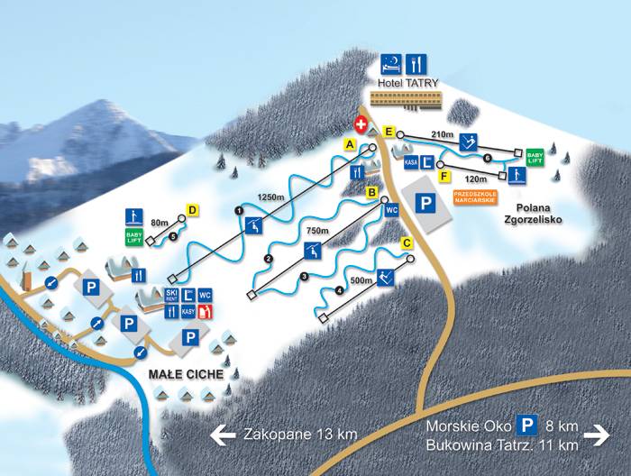 Małe Ciche (0,2 km), Murzasichle (8 km) Communes près du domaine skiable
