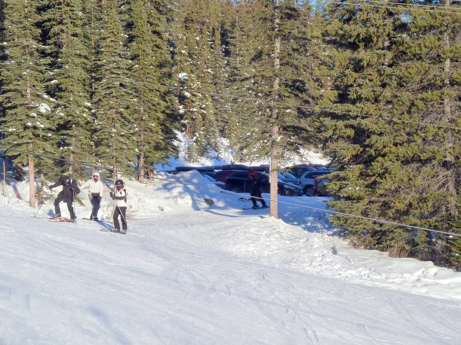 Le domaine skiable Marmot Basin est situé dans la partie ouest de la province d’Alberta, au sein du parc national de Jasper. Jasper est accessible depuis toutes les directions. Des routes bien aménagées (autoroutes) relient Jasper à Edmonton (360 km), Lake Louise (230 km), Kamloops (440 km) et Prince George (370 km). Depuis Jasper, il faut emprunter l’Icefields Highway n° 93 sur environ 8 kilomètres jusqu’à la bifurcation vers le domaine skiable. Ensuite, il reste 13 kilomètres à parcourir jusqu’à la station de départ située au Caribou Chalet. Ici, vous pouvez vous arrêter dans les zones de stationnement de courte durée pour acheter vos forfaits de ski et louer du matériel. Quatre grands parkings (P1 à P4) se trouvent un peu au-dessus de la station de départ, le long des pistes près du télésiège trois places School House Chair. Il est donc possible de se garer directement au bord des pistes. Une piste très facile longe les parkings et descend jusqu’au Caribou Chalet et aux remontées mécaniques. Un pass pour le parc national de Jasper est obligatoire pour accéder au domaine skiable. Vous pouvez l’acheter à Jasper ou au poste de contrôle à l’entrée du domaine. En cas de contrôle sans pass du parc national, des amendes importantes sont prévues.