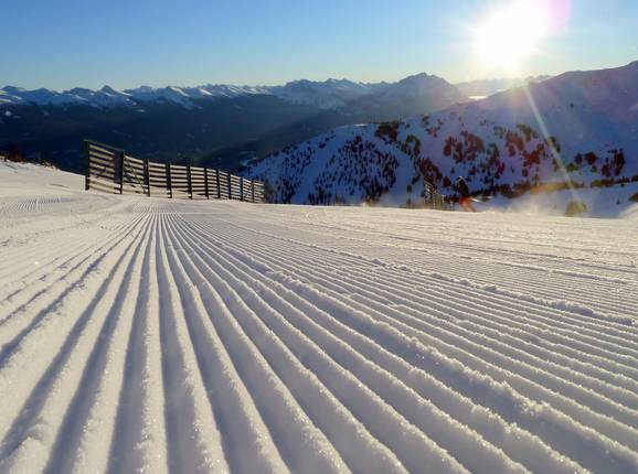 Dans le domaine skiable de Marmot Basin, les pistes sont préparées avec beaucoup d’attention aux détails. Les descentes très raides Eagle East, Chalet Slope et les pistes à bosses ne sont pas damées.