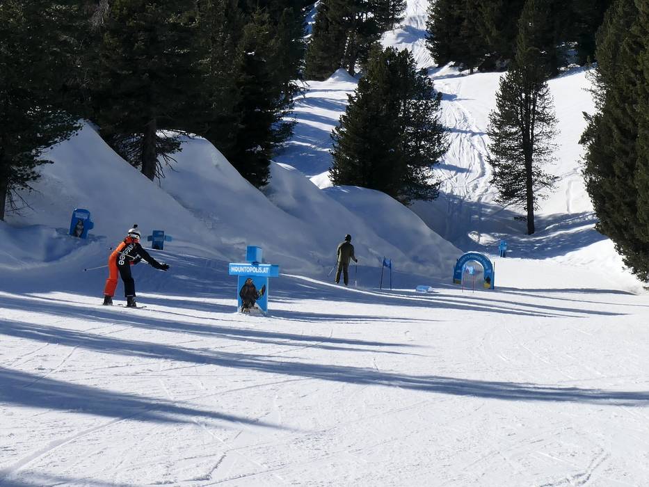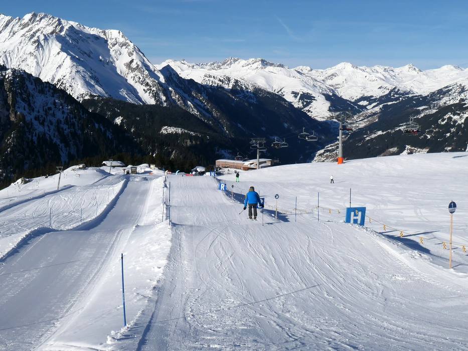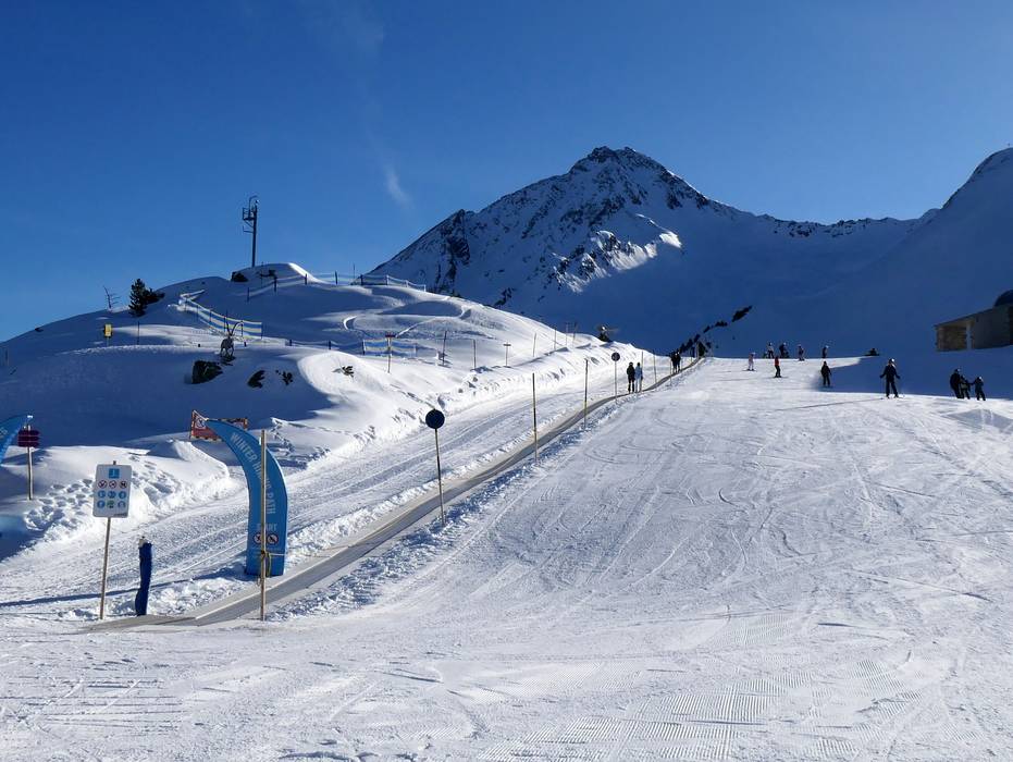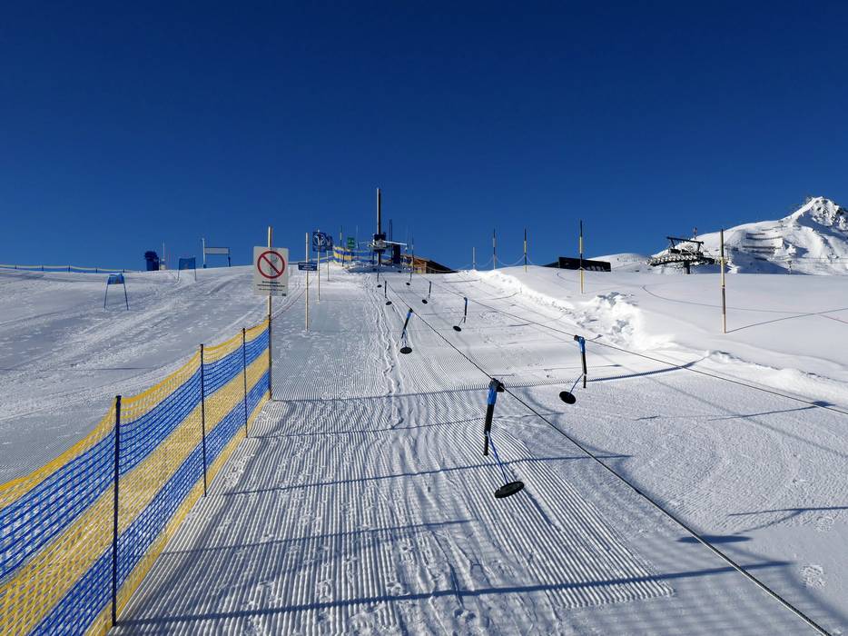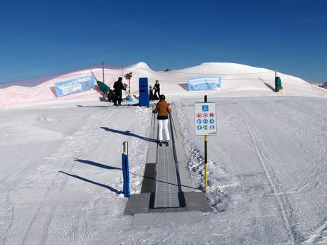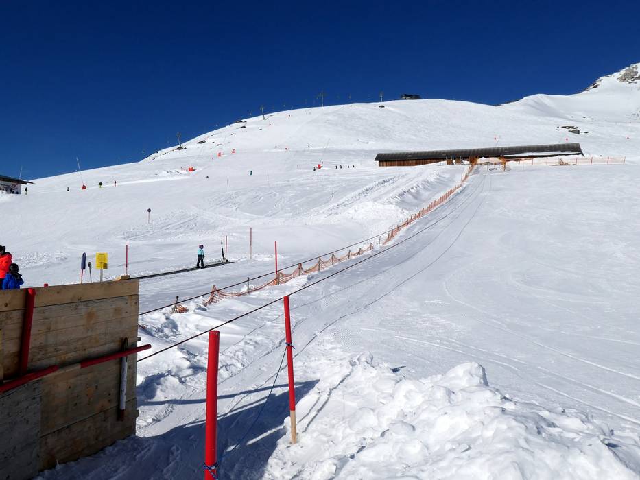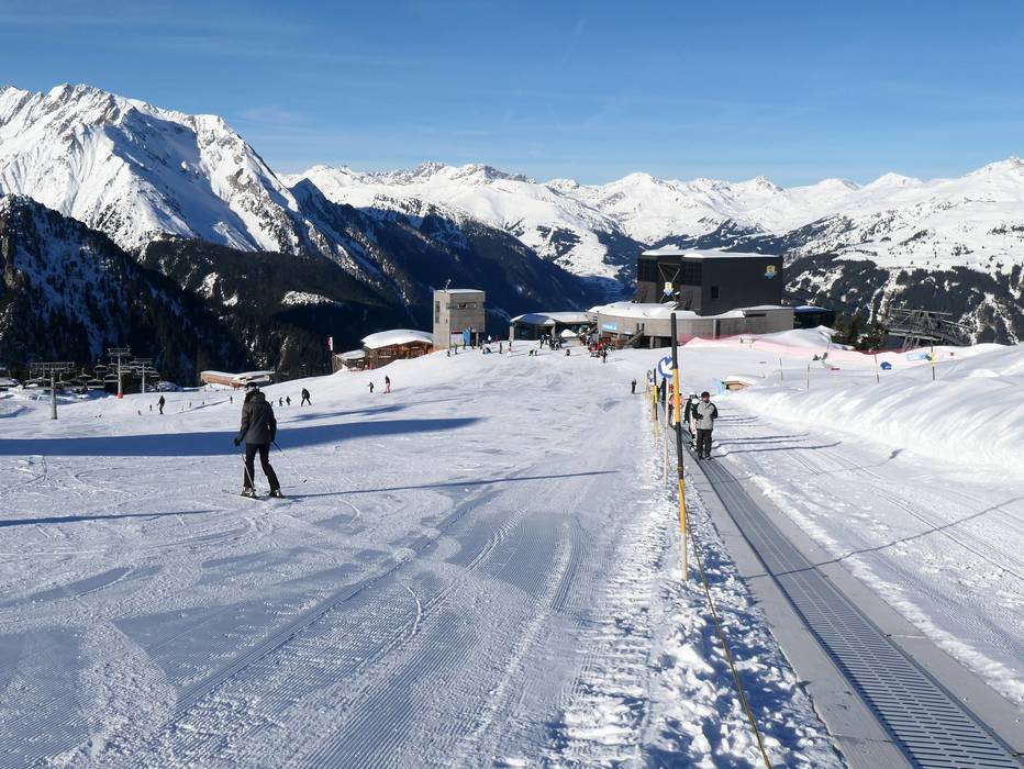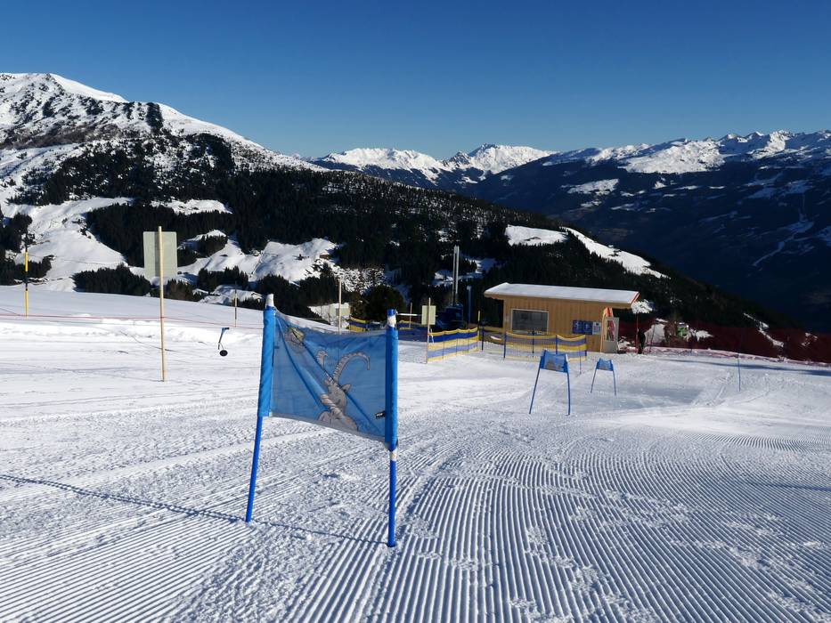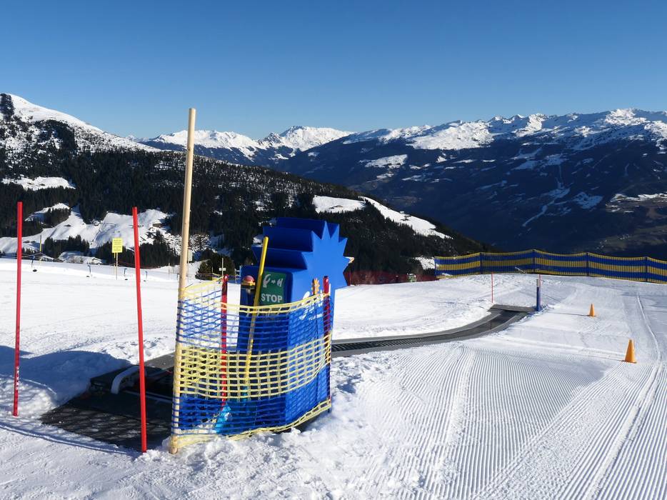 À la station supérieure du Rastkogelbahn, les débutants peuvent commencer dans l'espace d'entraînement.