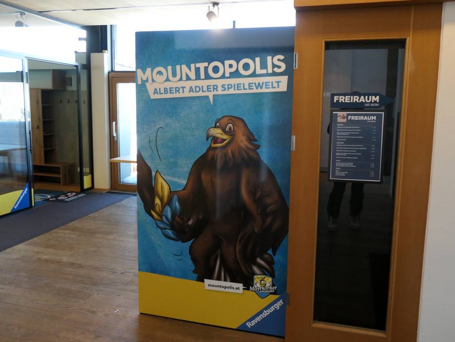 La mascotte AlbertAdler guide à travers des obstacles faciles et amusants sur l’Ahorn.