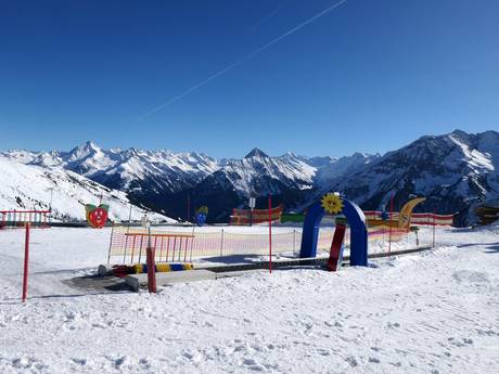 L'ensemble du domaine skiable de Mayrhofen est parfaitement adapté aux familles. De nombreuses pistes ludiques et de divertissement garantissent un maximum de plaisir. Des zones d'apprentissage avec tapis roulants et téléskis sont disponibles à toutes les remontées principales. De plus, différentes écoles de ski proposent, aux stations supérieures des remontées, de vastes espaces enfants qui, grâce aux tapis roulants, offrent une excellente initiation au ski pour les plus jeunes. Des pistes faciles mènent à la plupart des remontées.