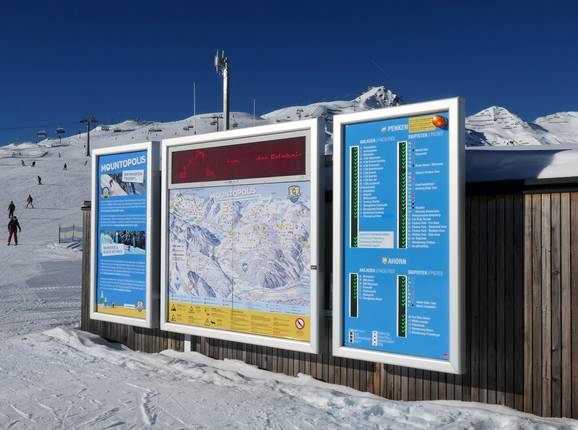 Le plan des pistes est conçu de manière claire. Tous les points importants tels que les refuges, les points forts et les expériences, les arrêts de bus et les possibilités de stationnement y sont indiqués. Toutes les expériences Mountopolis sont parfaitement décrites. De plus, la brochure présente plusieurs itinéraires intéressants à travers le domaine skiable. À certains endroits, il est difficile de reconnaître l’inclinaison d’une descente. Cela entraîne parfois une certaine confusion, notamment au niveau des liaisons.