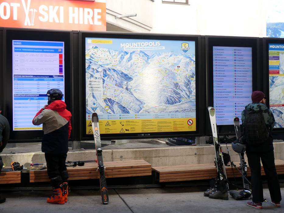 Indications de directions (plans, panneaux informatifs, signalisation) et sécurité sur le domaine skiable Mayrhofen – Penken/Ahorn/Rastkogel/Eggalm (Mountopolis)
