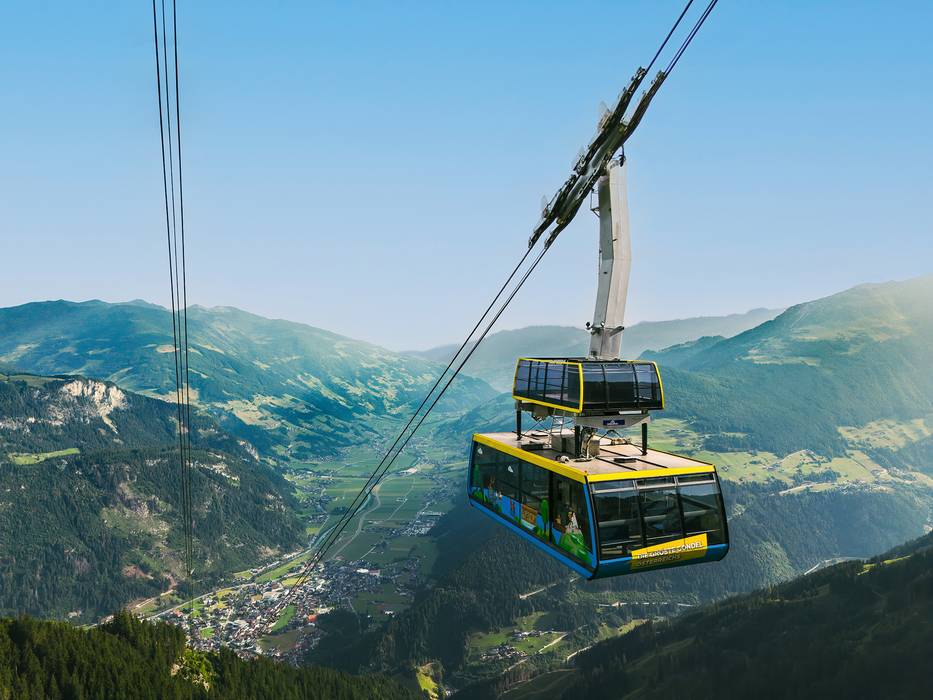 Open-Air Feeling au sommet ! Profitez d'une expérience de télécabine en plein air sur le pont panoramique ouvert de l'Ahornbahn, le plus grand téléphérique d'Autriche, avec une vue panoramique à 360° sur les montagnes du Zillertal. Ouvert également en hiver (selon l'enneigement et les conditions météorologiques).2024/2025