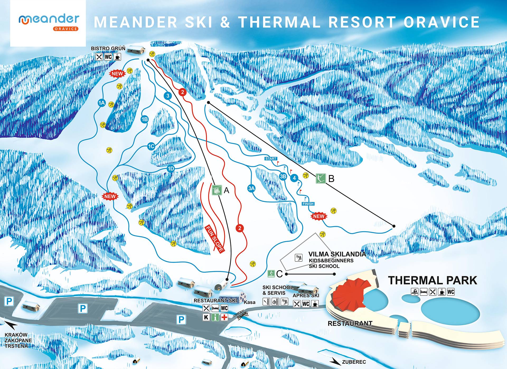 Plan des pistes Meander Skipark – Oravice Saison 2025/2026