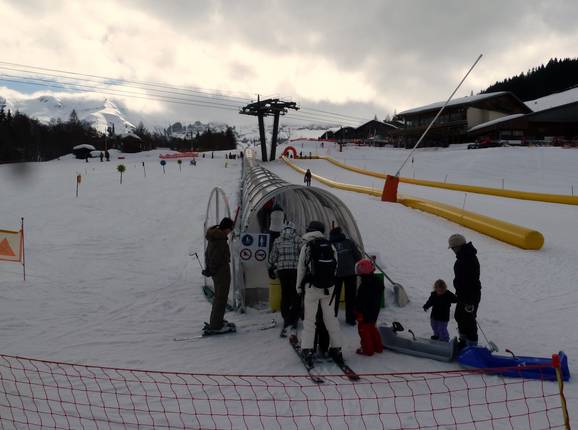 L'ensemble du domaine skiable de Megève et Saint-Gervais est accessible aux débutants. Il est tout à fait possible de rejoindre les différents villages par des pistes faciles. À toutes les stations de vallée, on trouve toujours des téléskis pour l'apprentissage avec des pistes faciles et parfois aussi des tapis roulants.