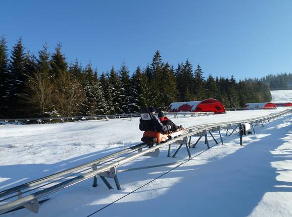 En plus des pistes de ski, une piste de luge spécialement aménagée promet également beaucoup de plaisir dans la neige. De plus, les plus petits peuvent se défouler sur une grande aire de jeux pendant que les parents se détendent sur la terrasse ensoleillée juste à côté. Et pour ceux qui en veulent encore plus, il est possible de faire quelques descentes rapides sur la piste de luge ouverte toute l'année, située juste à côté des pistes de ski.