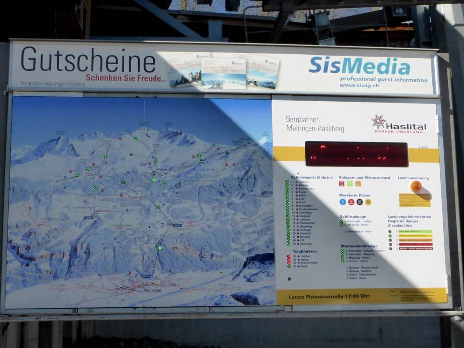 Le domaine skiable Meiringen-Hasliberg se situe dans la Jungfrau Region (Suisse, Espace Mittelland, Berne, Oberland bernois) et dans l' Haslital (vallée de l'Hasli) (Suisse, Espace Mittelland, Berne, Oberland bernois). Les skieurs et les snowboarders ont à leur disposition 60 km de pistes. 13 remontées transportent les visiteurs. La station de sports d'hiver se situe entre 1.055 et 2.433 m d'altitude.