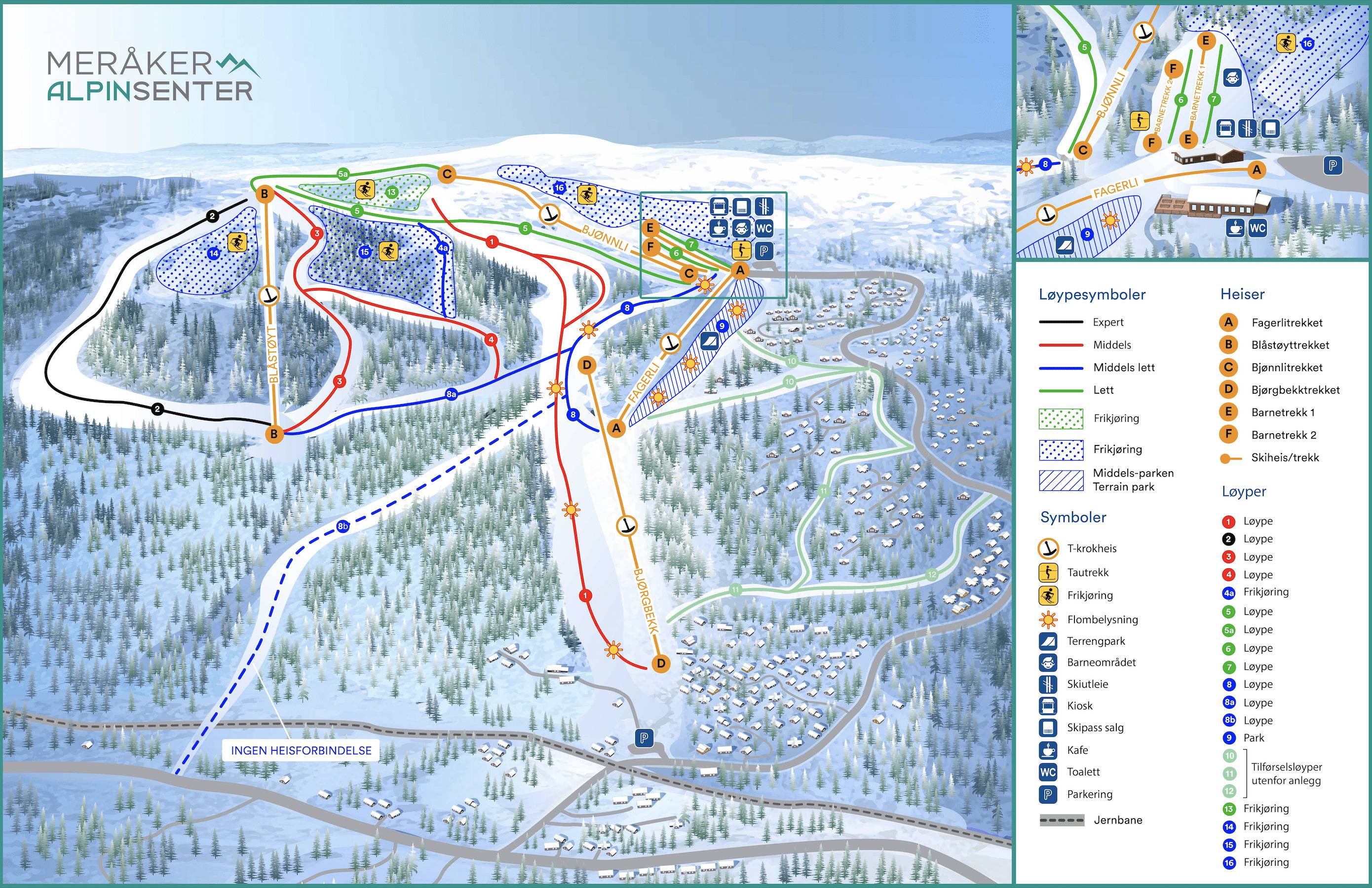Plan des pistes Meråker Alpinsenter Saison 2024/2025