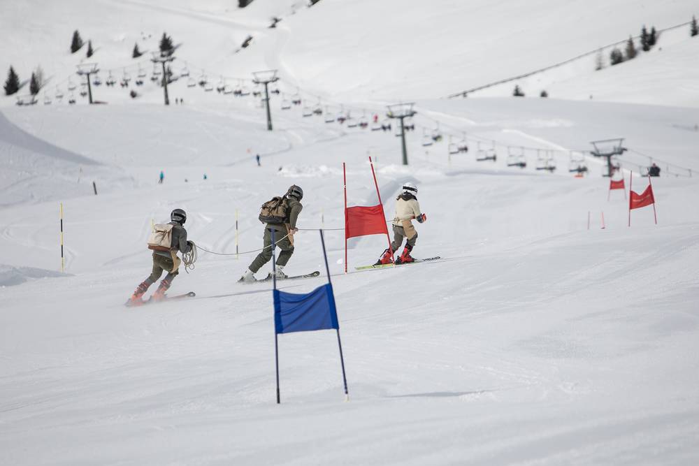 Lors de la légendaire course Soalrennen, des équipes de trois personnes, reliées par une corde, s'affrontent sur la piste Kesselberg.